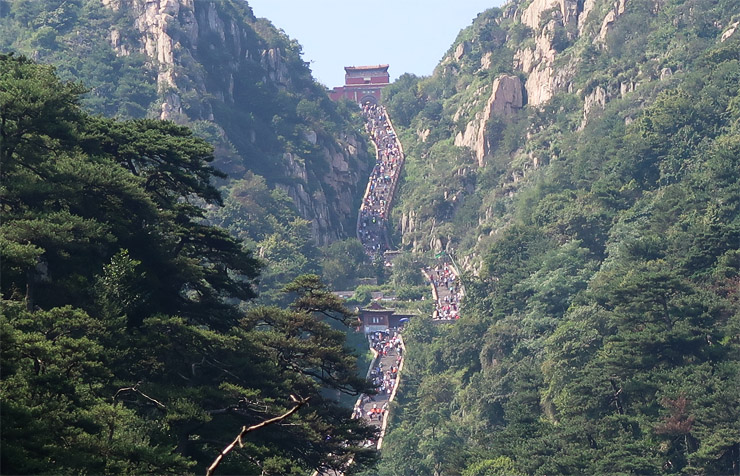 태산은 중국의 오악(五嶽) 중 동쪽에 위치하여 만물이 탄생하고 희망이 시작되는 곳으로 상징되며 천하제일산으로 추앙받는 역사적, 문화적 성지다. 태산은 고대부터 하늘과 가장 가까운 곳으로 여겨 역대 중국의 황제들이 천하를 평정한 뒤 하늘과 땅에 자신의 업적을 알리고 제사를 지냈던 곳이다. 진시황, 한무제 등 전설적인 황제들이 이곳에서 권위를 인정받았다. 태산이 위치한 산둥성은 공자의 고향이기도 하다. 공자가 태산에 올라 "태산에 오르니 천하가 작게 보인다(登泰山而小天下)"라고 했던 일화는 유명하다. 역사적 가치와 자연의 아름다움을 동시에 인정받아 1987년 유네스코 세계 복합 유산으로 지정되었다. 태산은 해발 고도가 약 1,545m로 아주 높지는 않지만, 끝없이 이어지는 돌계단으로 유명하다.