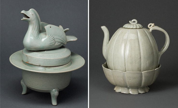□ Incense Burner with Cover in the Shape of a Mandarin Duck / 청자조각원앙뚜껑향로 (고려)