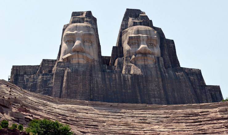 The sculpture of Emperors Yan and Huang is a monument in China that was carved from a mountain on the Yellow River. The overall monument height is 106m; a 55m base platform with 51-meter busts on top. The busts are the tallest non-Buddha statues, and the tallest statues of a ruler or head of state.