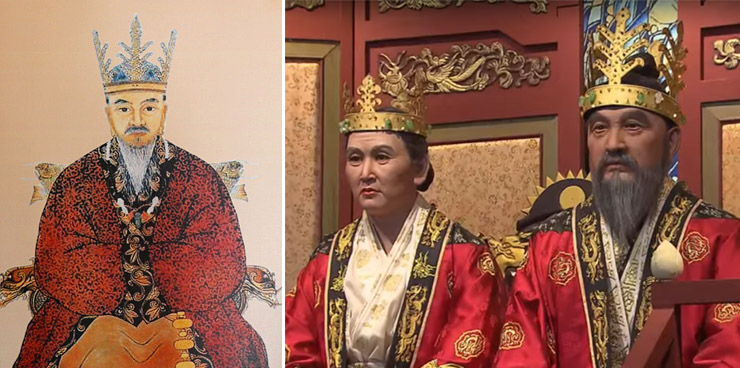According to the founding legend of Geumgwan Gaya recorded in the 13th century texts of the chronicle Garakguk-gi of Samguk Yusa, King Suro was one of six princes born from eggs that descended from the sky in a golden bowl wrapped in red cloth. Suro was the firstborn among them and led the others in setting up 6 states while asserting the leadership of the Gaya confederacy.