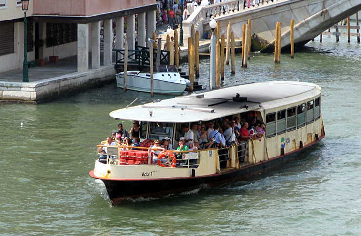 A vaporetto is a waterbus in Venice, Italy. There are 19 scheduled lines that serve locales within Venice, and travel between Venice and nearby islands, e.g., Murano, Burano, and Lido. The name, vaporetto, could be translated as "little steamer"...