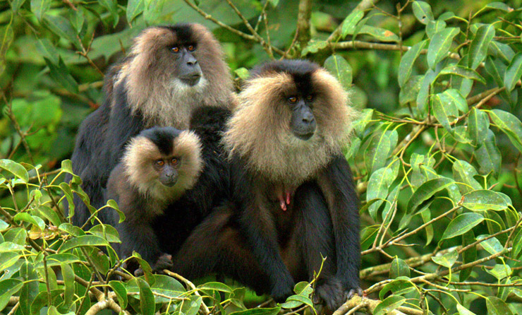 The lion-tailed macaque (Macaca silenus), or the wanderoo, is an Old World monkey endemic to the Western Ghats of South India. The hair of the lion-tailed macaque is black. Its outstanding characteristic is the silver-white mane which surrounds the head from the cheeks down to its chin, which gives this monkey its German name Bartaffe - "beard ape".