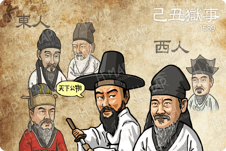 (중급) 01. 1589년 일어난 기축옥사 (己丑獄事) 는 1,000여명이 넘는 동인 관련 사람들이 희생되었다. "천하공물설"을 주장하며 기축옥사의 피바람을 불러일으킨 장본인은?