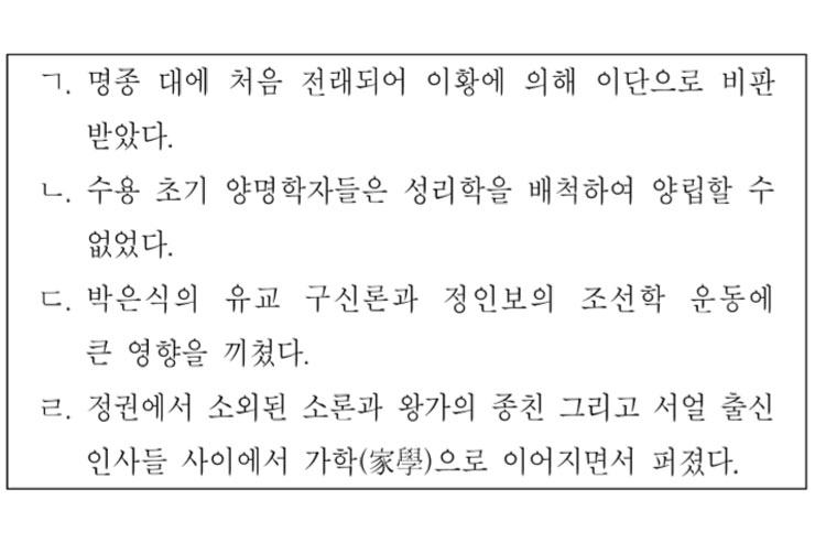 [2019년 국가공무원 7급] 양명학에 대한 설명으로 옳은 것만을 모두 고르면?